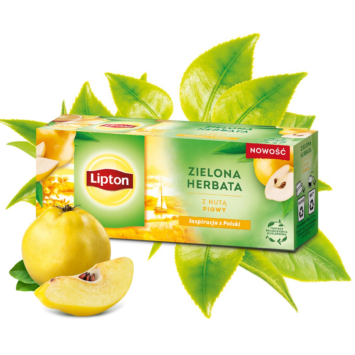 Delikatny i pozbawiony goryczki smak zielonej herbaty, połączony z aromatem soczystych owoców – to sekret wyjątkowej mieszanki Lipton Green Pigwa, która wyzwala radość już od pierwszego łyku.