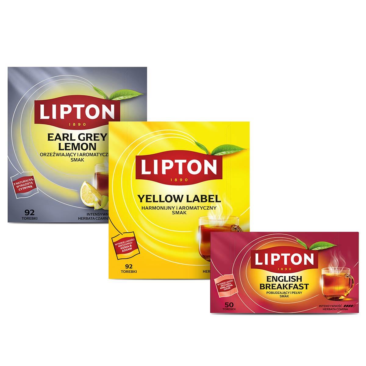 Zestaw Herbata czarna Lipton EARL GREY, ENGLISH BREAKFAST, YELLOW LABEL 234 torebki